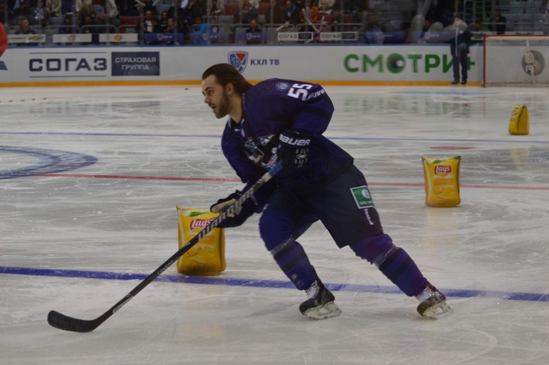 И вот оно то, ради чего мы все сюда приехали! На льду стартует «Шоу мастеров»! Естественно, наши взгляды всецело направлены на№ 55 команды Запад. Ник Бэйлен общался в основном с легионерами, периодически перекидываясь парой фраз с партнером по звену Ильей Ковальчуком. Всего динамовцу выдалось принять участие в двух конкурсах. Первый — на технику владения шайбой.