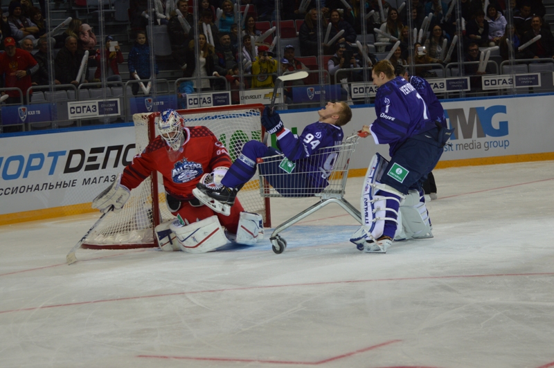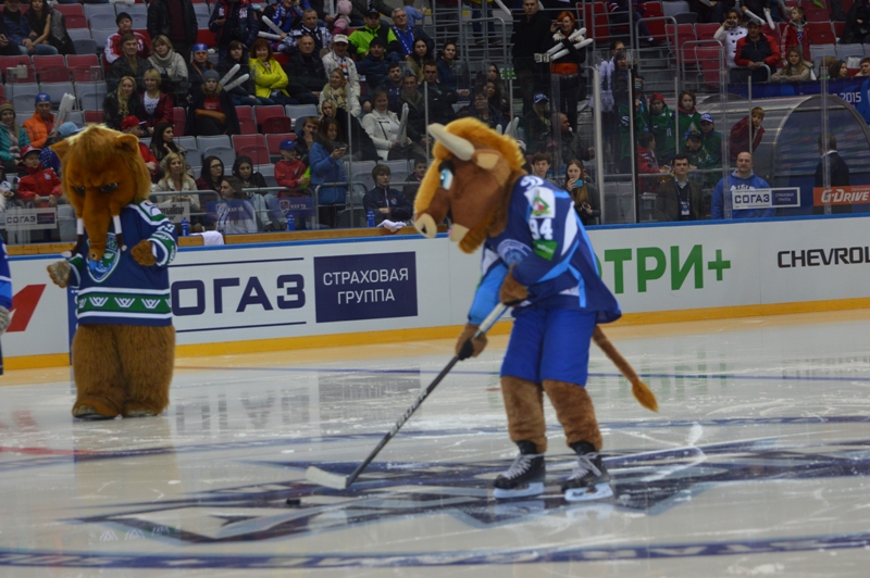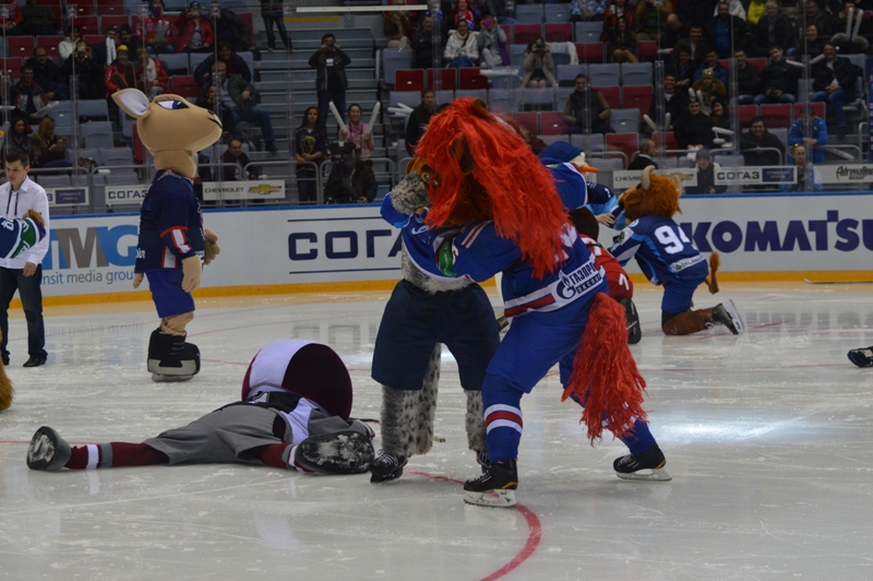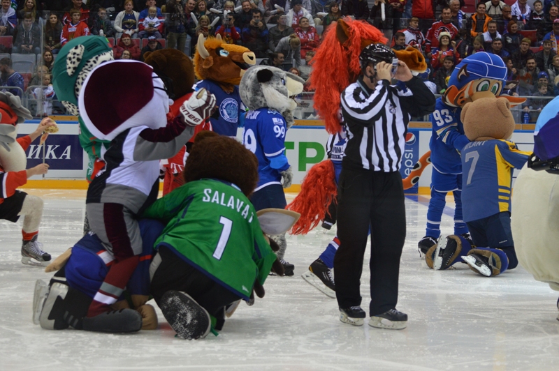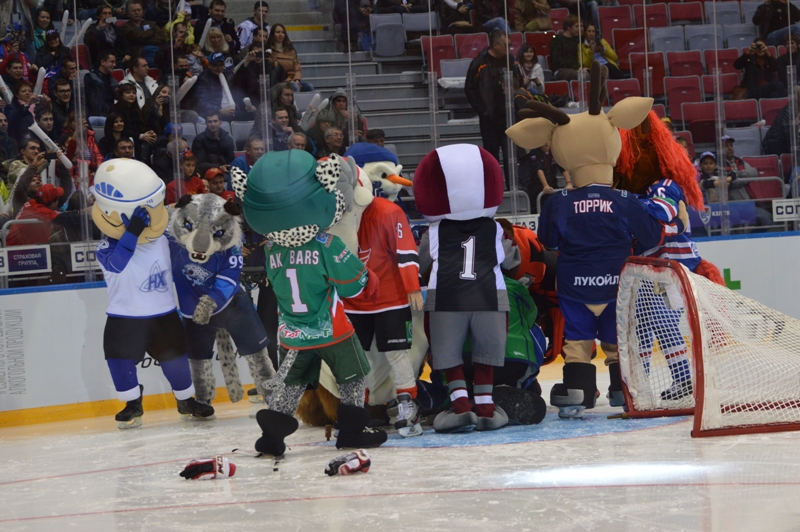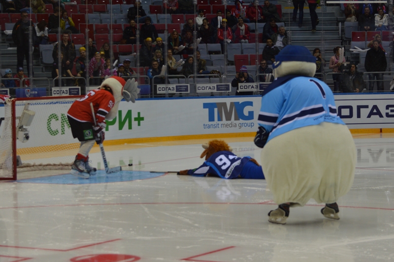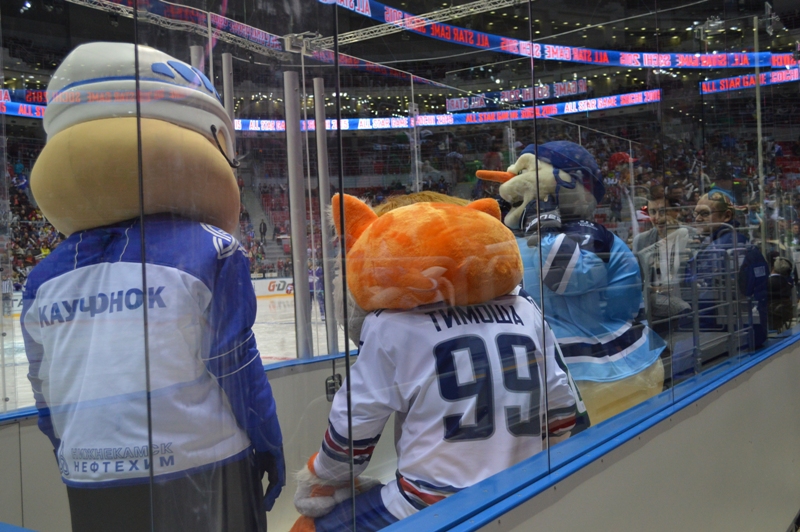 Во втором перерыве всех вновь ждало шоу маскотов. На этот раз зверушки соревновались в эффектности исполнения буллитов. В этом состязании не было равных «Барсу» из Астаны, впрочем, «зубрик» тоже отметился оригинальностью. Его задумка была исполнить буллит в бильярдном стиле. Получилось все, жаль шайба в ворота не пошла.