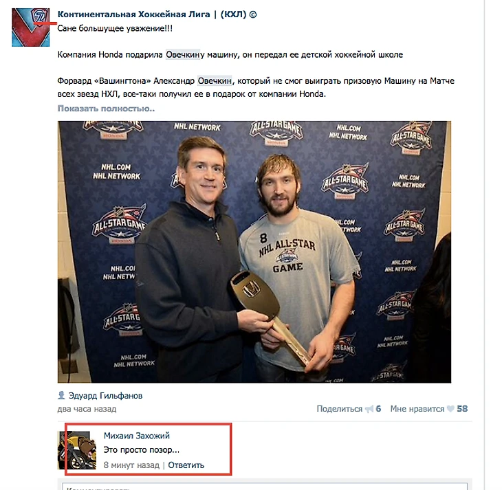 Вы удивитесь, но есть люди, которым не понравилась благотворительность Овечкина.