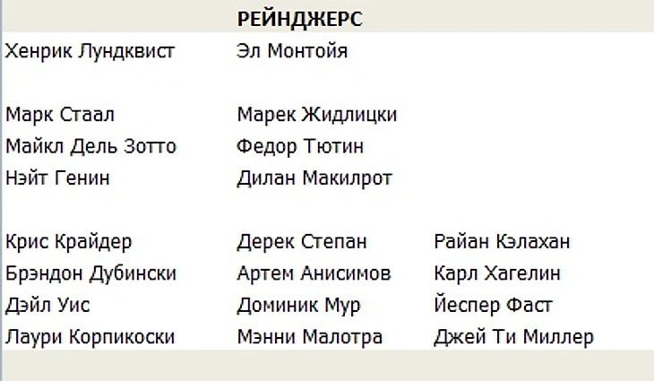 Не ищите Джирарди – он не был задрафтован, а это отдельная команда. В нападении не хватает чистых снайперов – их «Рейнджерс» предпочитали искать на рынке или через обмены. Напоминает «Коламбус», правда?