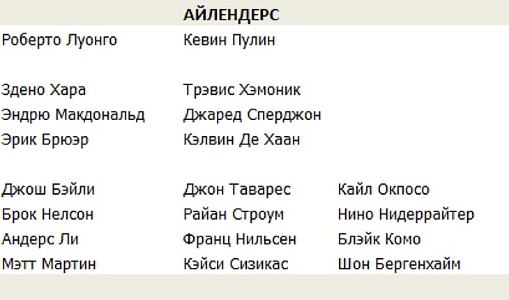 Выглядит неплохо, но если учесть, что до обмена Яшина «Айлы» выбирали в первой десятке с 1994-го по 2000-й, то кажется, что их All-Star Draft Team могла состоять из большего количества звезд. Но Бретт Линдрос (общий №9) не заиграл, Ди Пьетро (№1), Коннолли (№5), Редден (№2) и Дюмонт (№3) уже завершили карьеры, а Раффи Торрес (№5) не прошел бы в эту команду. В 2000-х косяков в первых раундах драфта у «островитян» также хватало. Роберт Нильссон и Петтери Нокелайнен даже в КХЛ не выделялись, а Райан О’Марра сейчас играет в Великобритании.
