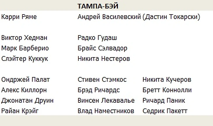 Тройку Кучерова пришлось бы разбить – Джонсон не был задрафтован, в оборону вместо Строльмана, Шустра, Карла и Гаррисона поставить старичков или совсем неопытных игроков. С Ричардсом и Лекавалье в центре эта команда точно не была бы такой быстрой, как сейчас.