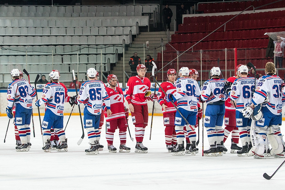 Теперь в Сокольники. Знакомая арена, знакомый район. Матч для меня был очень особенным, но соперник сложный - Спартак действующий чемпион Кубка Харламова, и клуб сохранил нескольно сильных игроков. От стартового свистка СКА имел инициативу однако, но практически сразу пропустил - Алексей Ткачук вышел один на один после большого провала в защите, и спокойно переиграл Никиты Богданова. Тем не менее этот гол не сломал нашу игру, и Константин Волков сравнял счёт за 4 минут дo конца первого периода. Шайба очень редко покинула зону Спартака, и в начале второго Виктор Комаров вывел СКА вперед с броском в правом круге вбрасывания. Этот гол помог Спартаку играть агрессивнее, и после Дмитрий Воробьёв забросил с кистевым броском из дальней дистанции, Владимир Пешехонов забил обидный гол за 22 секунд до сирены в большинстве. Этот гол не стал ключевым однако, и в концовке Иван Володин спас игру после вратарь Спартака не сумел зафиксировать шайбу. Последняя минута была просто сумашедшей...сначала Александр Барабанов попал по перекладину, а потом только штанга выручила СКА. В овертайме, слава Богу, СКА оказался сильнее - Александр Барабанов отправил шайбу в сетку ворот после сольного прохода Николая Демидова.