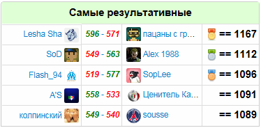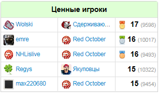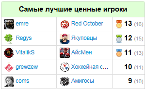 Самые ценные игроки (одержавшие наибольшее число побед):