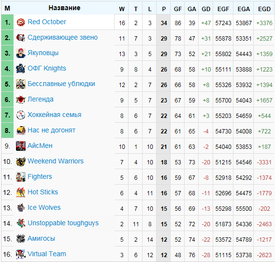 Турнирная таблица: