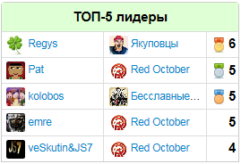 Количество попаданий в ТОП-5 по итогам недели: