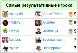 Самые результативные игроки (становившиеся лучшими в своей команде по итогам недели):