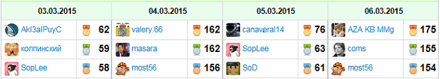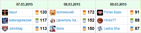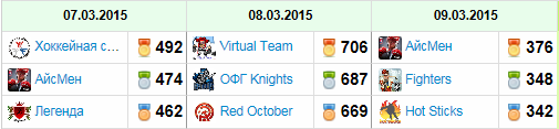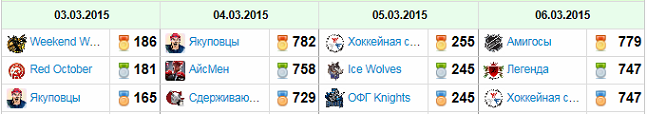 Лучшие команды по дням: