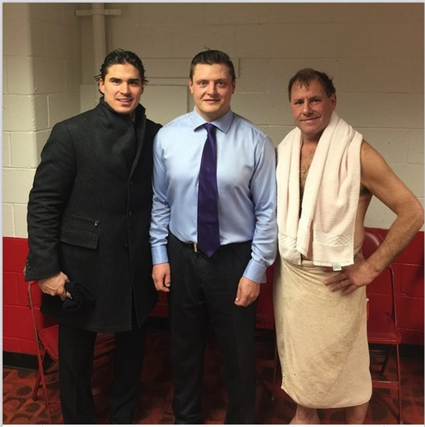 После игры Евгения также поздравил Наиль Якупов, но и это еще не все. Когда мимо Ромасько проходил капитан «Ойлерс» Эндрю Ференс, он, улыбаясь, спросил: