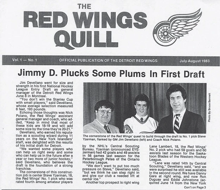 21 июня 1983 года. Наконец-то пришел день моего первого драфта НХЛ в роли генерального менеджера «Детройт Ред Уингс». На своей вступительной пресс-конференции я заявил, что буду выстраивать команду именно через драфт, так что я получил шанс приступить к делу. В то время в Детройте было много недовольных нашими результатами. Тогда мы играли в дивизионе «Норриса», где из пяти команд четыре выходили в плей-офф. Нас в их числе не было, и это продолжалось шесть лет подряд. Само собой, люди начинали терять терпение, но проблема в том, что когда ты строишь команду через драфт, терпение просто необходимо. Такого рынка свободных агентов, как сейчас, в те годы не было.