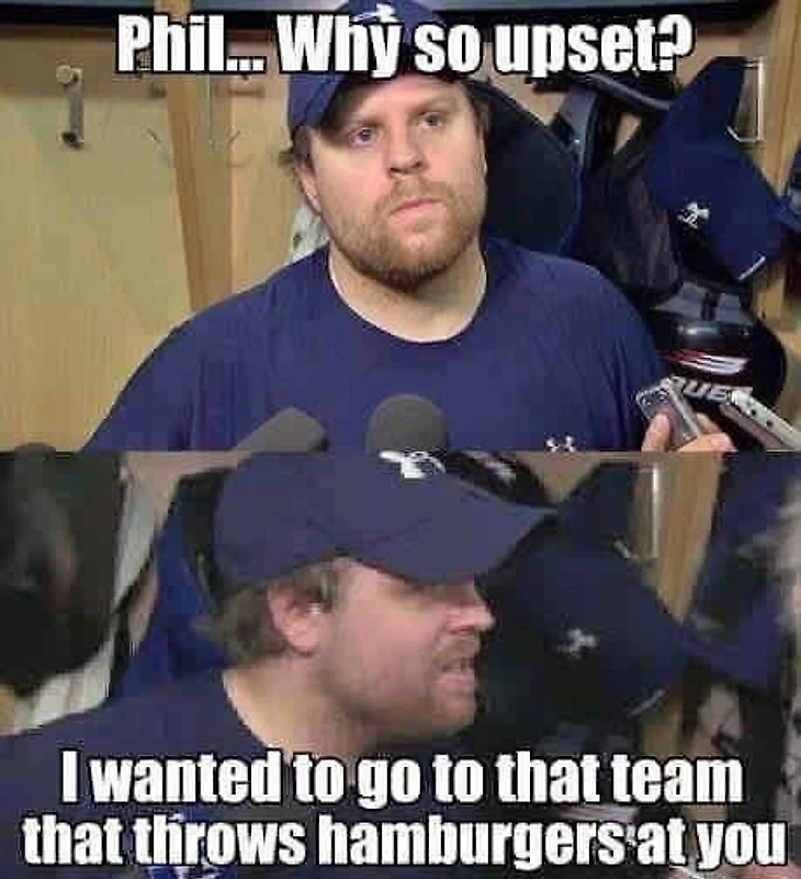 "Фил... Почему так расстроены?" - "Я хотел перейти в ту команду, которая бросает гамбургеры в тебя"