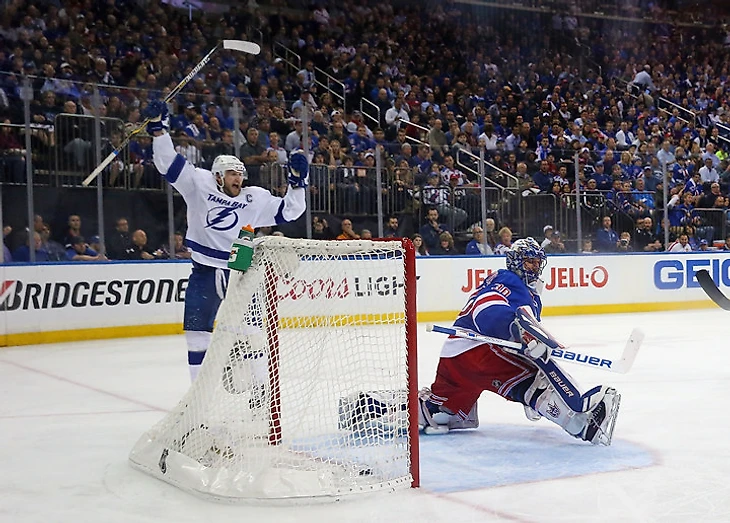 Посмотрите, как в этом моменте Стэмкос совсем чуть-чуть согнул колени. Но бросок все равно был точным и молниеносным.