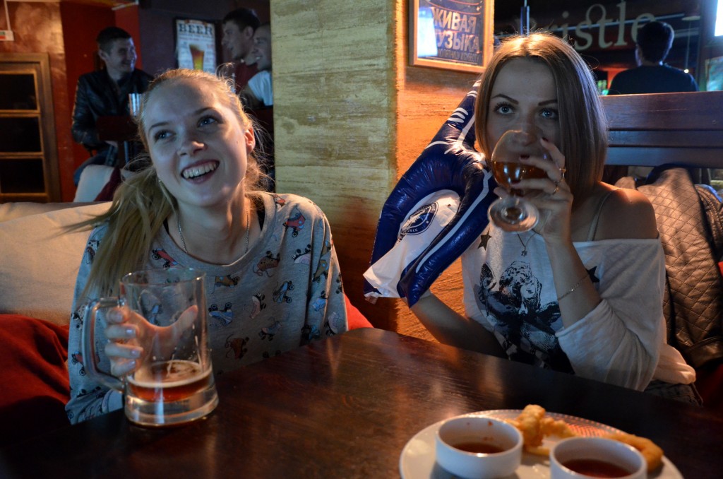 Когда команда отбывает на гостевую серию, а душа просит хорошего хоккея в компании друзей, на помощь приходят спортбары. Если угадать с выбором заведения, то можно нарваться на отличное пиво, широкие экраны с удобным обзором и интеллигентный персонал, который в хоккейной теме ориентируется не хуже болельщиков. Пиво, признаюсь, я так и не продегустировала – все-таки на службе. Зато с динамовскими фанатами и остроумными работниками одного из столичных баров успела обсудить много интересного.