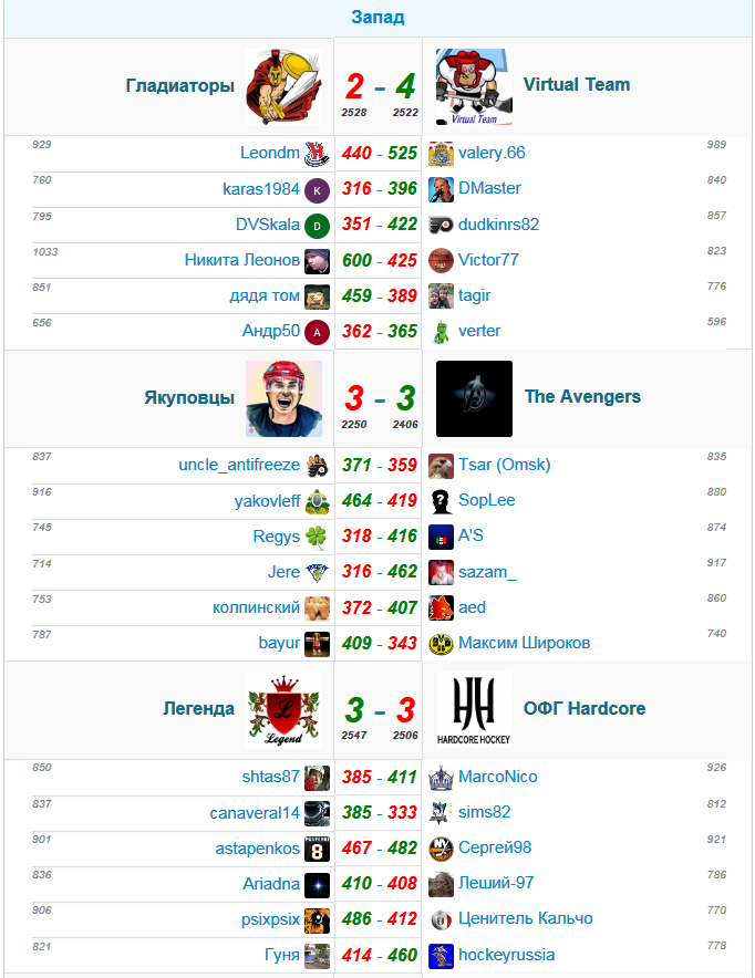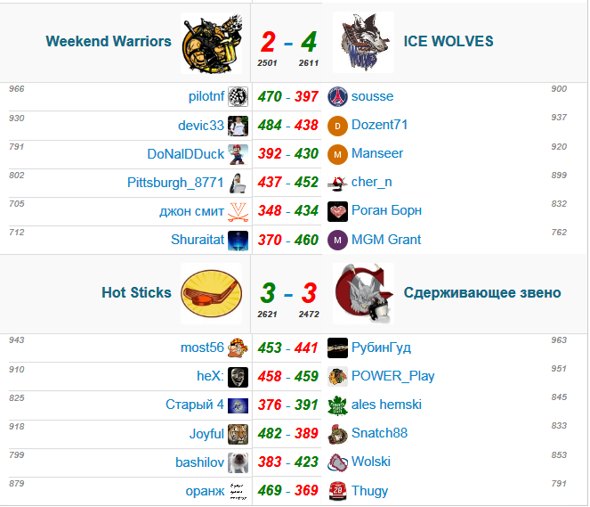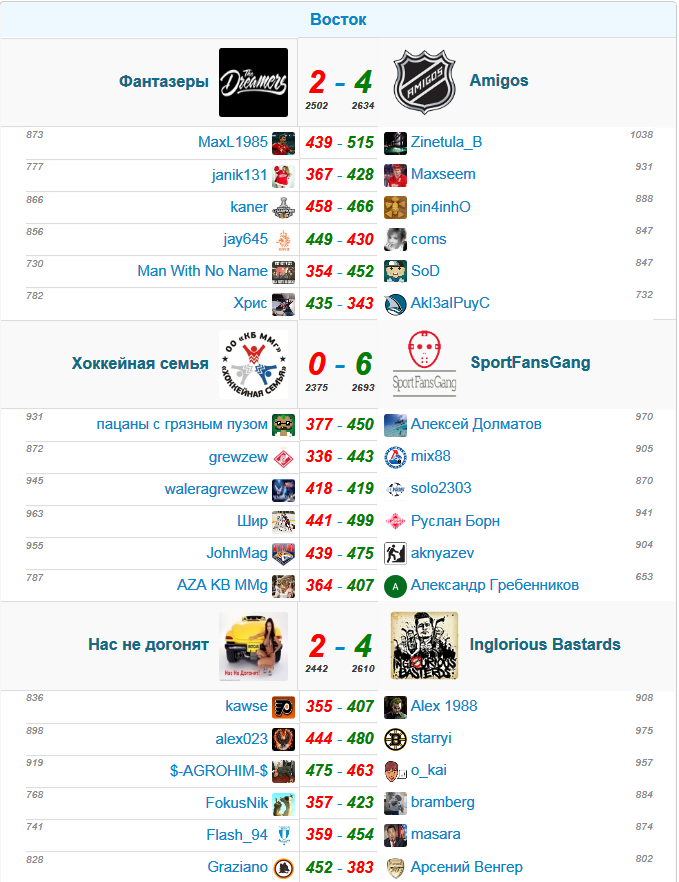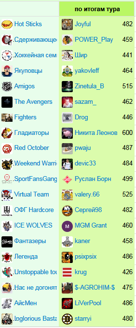 Итоги 2-го тура, лучшего командного турнира- Team Head to Head NHL сезон 2015/16