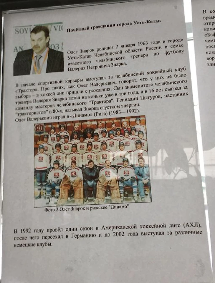 «Почетный гражданин Усть-Катава – Олег Знарок. Он родился 2 января 1963 года в Усть-Катаве в семье известного тренера по футболу Валерия Петровича Знарка». Второй известный местный уроженец – заслуженный тренер России Владимир Воробьев, воспитавший множество хороших хоккеистов.