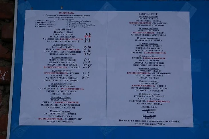 Как говорят во всяких торжественных речах? «Эта поездка не была бы возможна без…»? Не совсем. Эта поездка для меня почему-то сопровождалась огромным количеством мелких сложностей, опозданий; избыточным количеством потраченных денег и тому подобного. В воскресенье мы должны были с челябинским другом Володей Подкорытовым заехать сразу на два матча. Один был запланирован в рамках Челябинской лиги дворовых команд, но уже с утра любезные составители сайта (спасибо им) сказали, что команде «Сокол» засчитано техническое поражение, и ехать смысла нет. В морозном Челябинске на интересной площадке прямо около университета должны были играть перенесенный матч чемпионата области: челябинское дерби между «Политехником» и «Сигналом». Но не сыграли. По крайней мере, здесь и сейчас. В назначенное время каток был совершенно пуст без объявления причин.