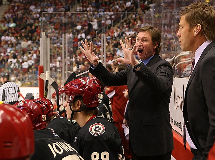 48. Гретцки был тренером «Финикса» с 2005 по 2009 год. За это время его команда выиграла 143 матча, потерпела 161 поражение в основное время и 24 – в дополнительное. Самое высокое достижение – 12-е место в Западной конференции. Гретцки сложил свои полномочия, когда клуб проходил процедуру банкротства. В конце концов, лига спасла «койотов».