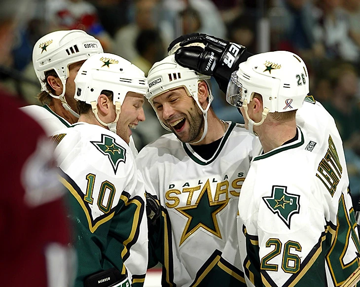 Титулы оборонительного плана доставались финскому форварду «Старс» Лехтинену, по 50 голов за сезон в ту эпоху забивали человек десять-двенадцать, а «Конн Смайт Трофи» в победном для «Старс» плей-офф-1999 получил не Майк, а Джо Нуиндайк, который забросил шесть решающих шайб. Ближе всего Модано приблизился к завоеванию «Колдер Трофи», но в год его дебюта в НХЛ не было возрастных ограничений для новичков – и американец проиграл Сергею Макарову.