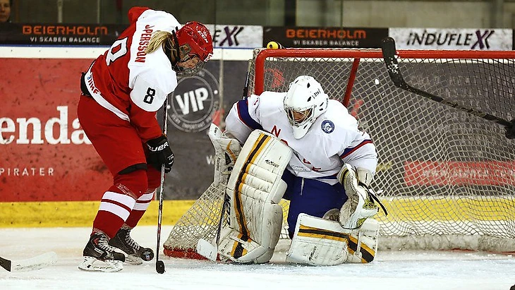 Дания 3:2 Норвегия. Важная для хозяек победа с точки зрения решения своих локальных турнирных задач. У Дании дубль на счету Якобсен, а у Норвегии - у Андреа Дален.