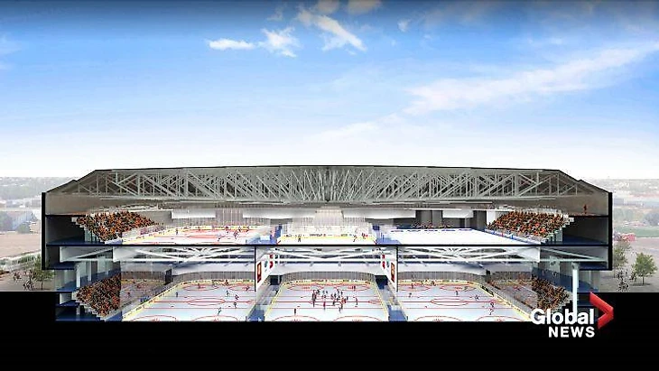 Общее число мест на арене будет снижено до 2800-3000, чтобы создать дополнительное место для ледовых площадок. Концепция проекта отражена на фото "Global News". Кроме того, издание разузнало и о потенциальной смене названия арены на "Норслендс Айс Колизеум" (прим. - аналог старого названия арены 1980-х). "Норслендс" стараются удачно выбрать назначение для обновленной арены, чтобы не только привлечь максимальное количество хоккейных команд в город и создать возможность для поддержки туристических потоков, но и дать городу столь необходимые ледовые площадки." - рассказывает Майкл.