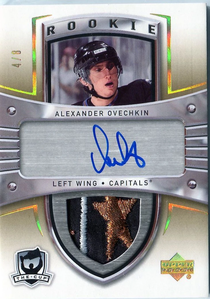 Как обычно, не отстает и Александр Овечкин. Его фанатам было гораздо сложнее получить себе в коллекцию аналогичную карту - их было выпущено всего 8 шт. т.к. тираж Rainbow-параллели совпадает с игровым номером хоккеиста. Какому-то счастливчику пришлось выложить за карту без грейда 4500$.