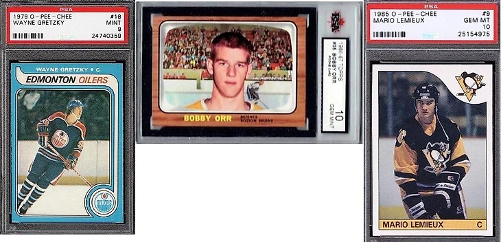 Рынок этих карт более-менее стабилен и делать ежемесячные обзоры этой категории достаточно скучно. В тройке с вероятностью 99% будут rookie-карты Уэйна Грецки и Бобби Орра - стабильно дорогие, но при этом достаточно часто встречающиеся и поэтому часто перепродающиеся. А еще одно место займет одна из более редких карт звезд далекого прошлого или карта в идеальном состоянии одной из звезд 80-90-х годов. Встречаются такие карты достаточно редко, поэтому коллекционеры готовы платить за них совсем не маленькие деньги.