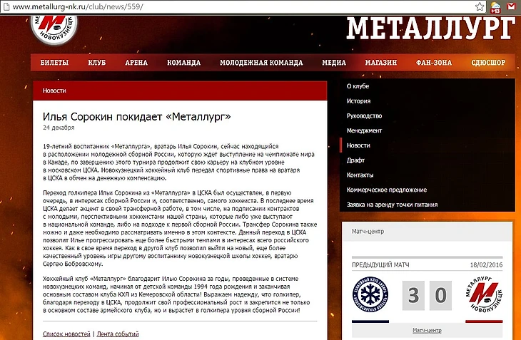 Вот здесь только ошибка "Перед сезоном была сделана ставка на Ложкина и Сорокина – и последнему отдавалось предпочтение. Но Илья не справился – и тут еще вопрос: физически или психологически".