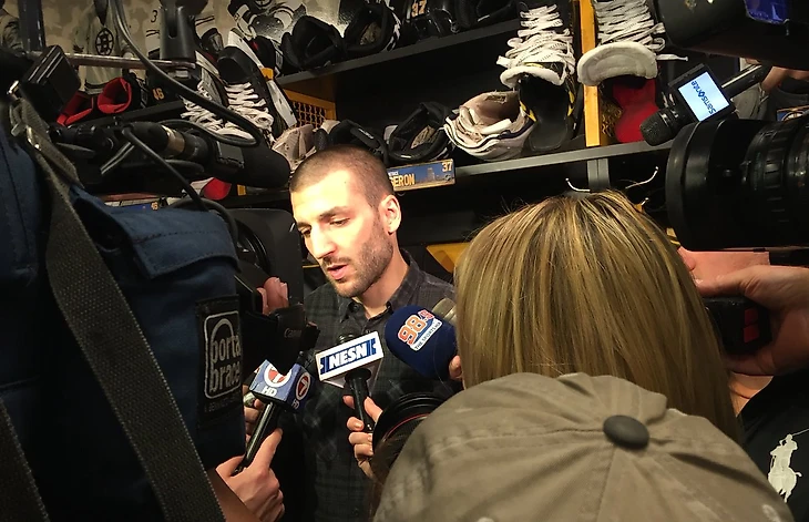 По ходу матча Брюинз обнаружили, что проигрывают в три шайбы, а тайм-аут уже использован. Бержерон в хлесткой манере обвинил самого себя.