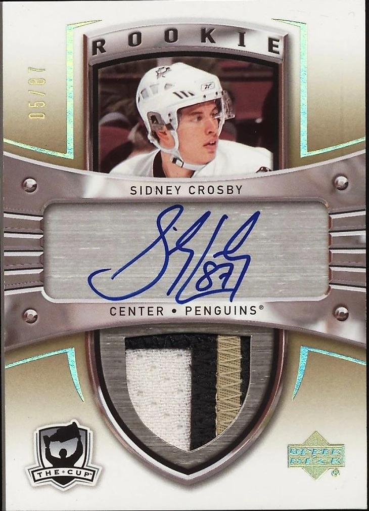 3) Далее карта новичка Сидни Кросби из 2005-06 The Cup Auto Rookie Patch, тираж 87 экз. Её оценили на 100$ дороже - 3300$
