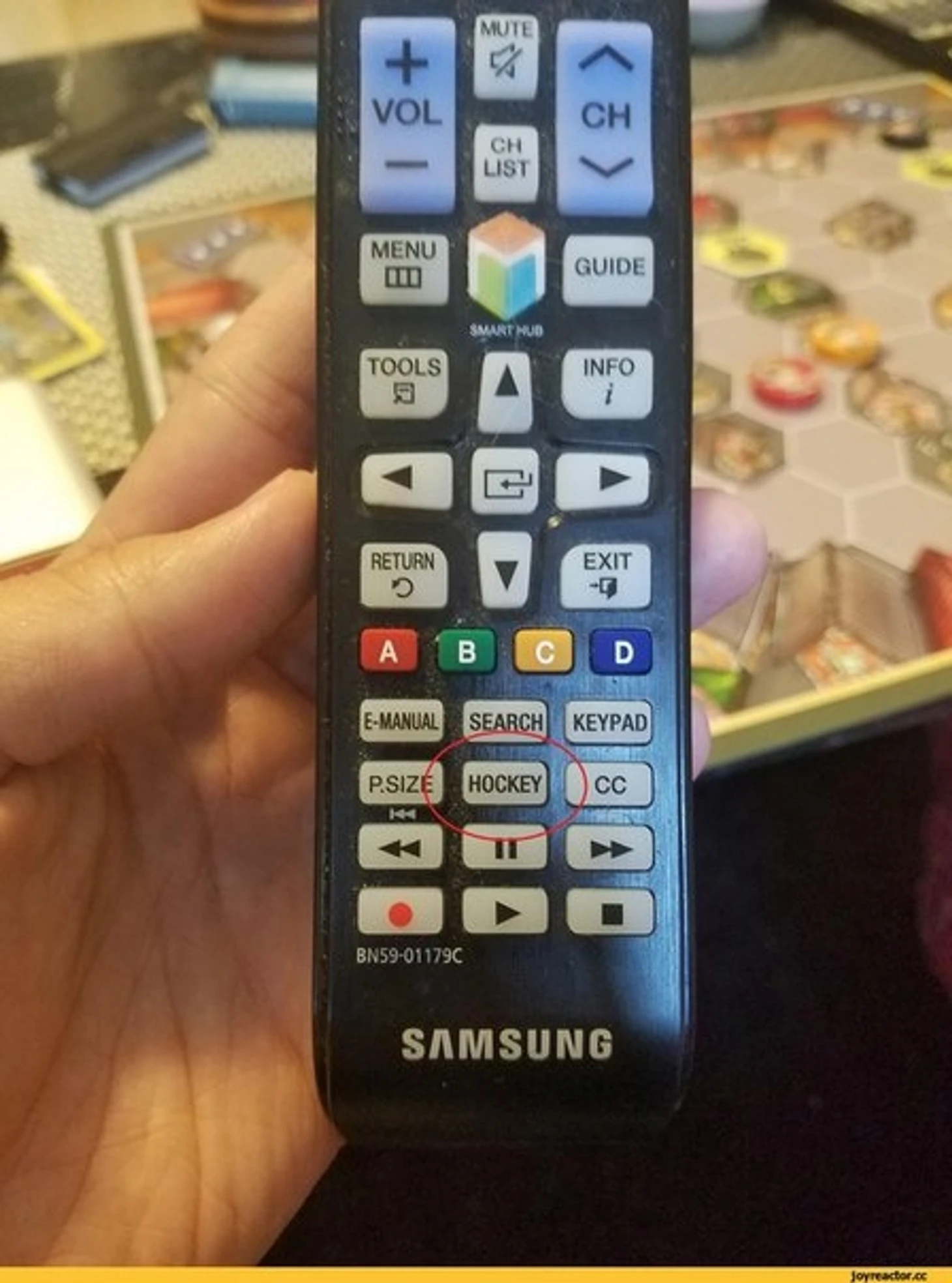 Канадский пульт практически ничем не отличается от обычного, просто на нём есть кнопка "Хоккей".