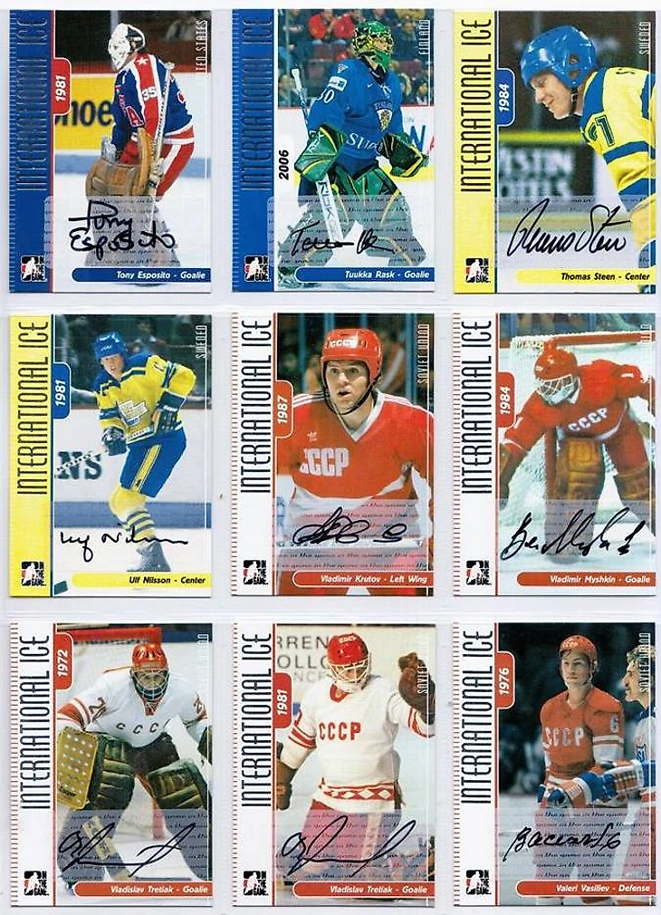 Коллекция хоккейных карточек посвящена звездам мирового хоккея, выступавшим на крупнейших международных соревнованиях с 1972 по 2006 год.