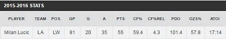 28-летний Лучич забил 20 шайб и набрал 55 очков за сезон, в четвертый раз за карьеру добравшись до этих отметок. Лучич один из пяти игроков, которые забили более 100 шайб за последние 6 сезонов, при этом набрав не менее 500 штрафных минут.