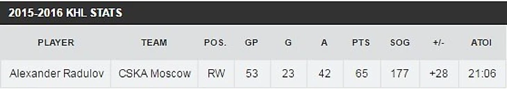 29-летний Радулов – переменчивый талант, который был хорош в НХЛ, набрав 102 очка (47 + 55) в 154 играх, но лучше выступал на протяжении 8 последних лет в КХЛ.