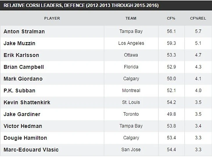37-летний Кэмпбелл все еще один из лучших защитников «пак-муверов», который улучшил иглу защиты «Флориды». Вот защитники с лучшими показателями по владению шайбой за последние четыре сезона (минимум 4000 минут в режиме 4-на5):
