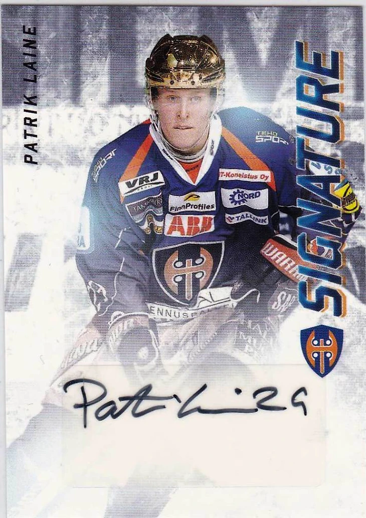 Далее, идет второй номер драфта Патрик Лайне выбранный Виннипегом игрок финской Таппары. В Финляндии тоже выпускают коллекционные карты, посвященные национальному чемпионату.