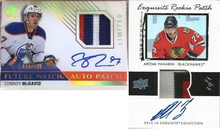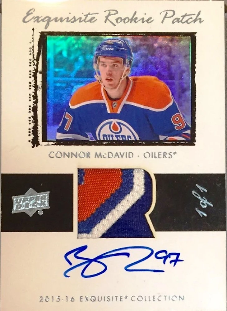 3) Колдер Колдером, но дальше только карты Коннора МакДэвида. Сначала патч из недавно вышедшего SP Authentic Future Watch Limited Autograph Patch тиражом 100 экз. Он оценен в 3000$ ровно.