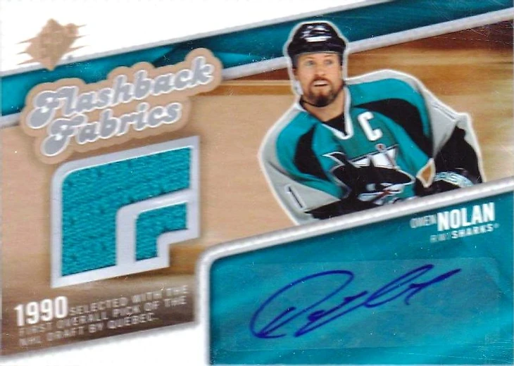 2) Достичь отметки в 1000$ смог первый номер драфта 1990 года Оуэн Нолан и карта с джерси и автографом из коллекции 2005-06 UD SPx подсерия Flashback Fabrics тираж 1/ 10