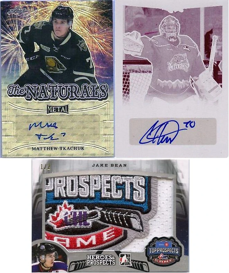 Игроков молодежных канадских лиг добавляет в свои коллекции американская компания Leaf. Собственно большинство карт в топе именно от этого производителя. К сожалению, по швейцарскому чемпионату не выпускается коллекций с джерси и автографами, поэтому в пролете оказался первый номер Драфта Остон Мэтьюс.