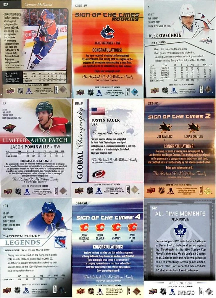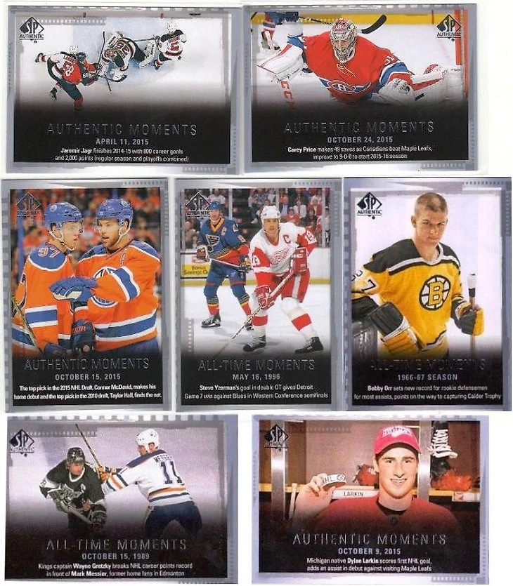 All-Time Moments/Authentic Moments.30 карт (№ 131-160). Подсерия посвящена памятным моментам истории НХЛ/этого сезона. Изображения на картах стилизованы под фотокадры и содержат собственно фото памятного момента. На обороте приводится его описание. В блоке попадается 4 карты.