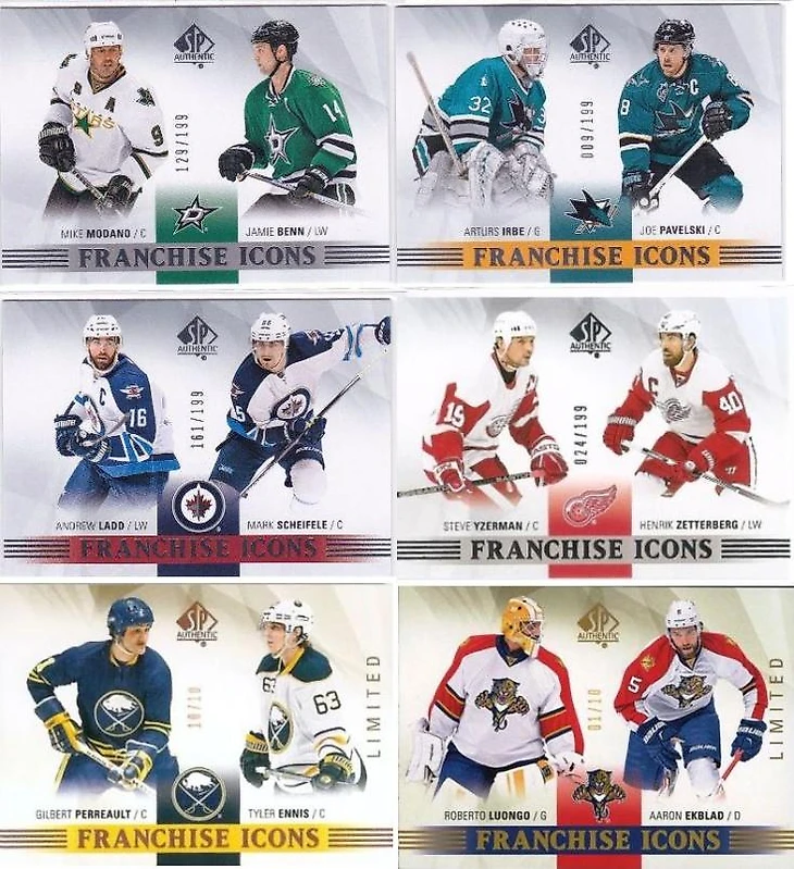Franchise Icons. 30 карт (№ 161-190) тираж каждой карты 199 экз. На картах изображены 2 игрока - звезда прошлго (или ветеран) и молодая звезда - оставившие заметный след в развитии клуба. По 1 карте на команду. Попадается 1-2 карты на кейс.