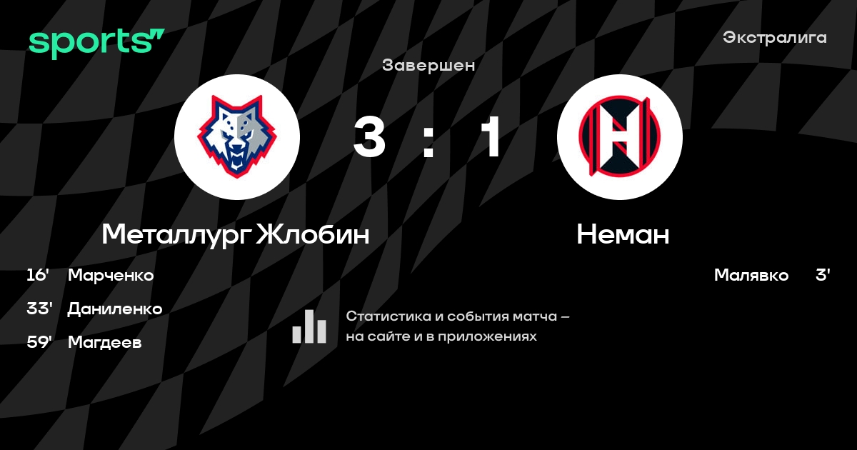 В прошедшем матче в рамках турнира Экстралига состоялась встреча команд Металлург Жлобин - Неман в городе Жлобин (Беларусь) на стадионе Ледовый дворец Металлург (вместимость - 2018)