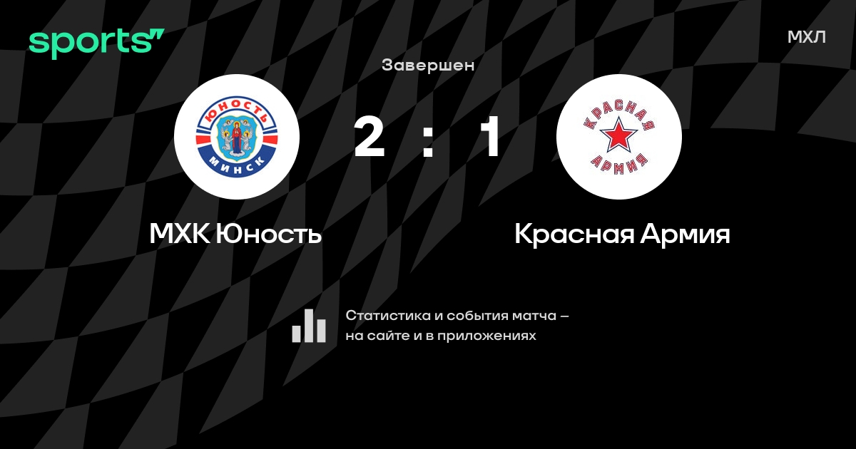В прошедшем матче в рамках турнира МХЛ состоялась встреча команд МХК Юность - Красная Армия со счетом 2 : 1.