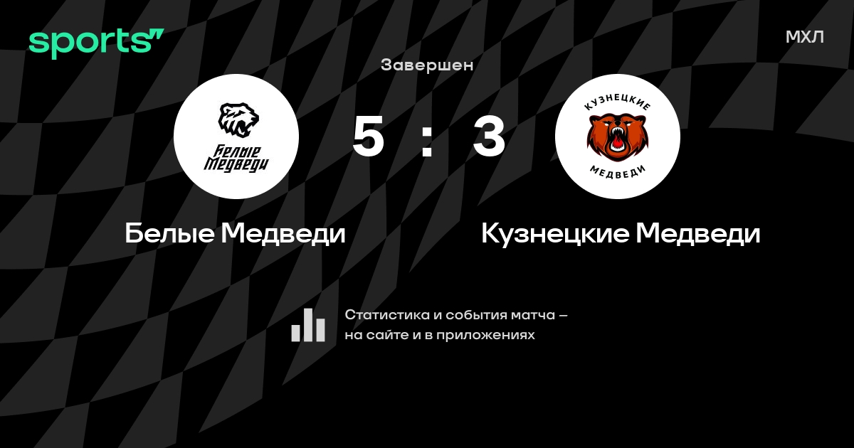 В прошедшем матче в рамках турнира МХЛ состоялась встреча команд Белые Медведи - Кузнецкие Медведи со счетом 5 : 3.