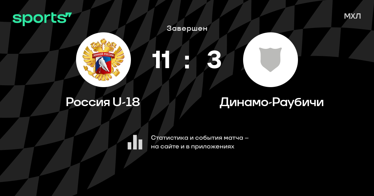 В прошедшем матче в рамках турнира МХЛ состоялась встреча команд Россия U-18 - Динамо-Раубичи со счетом 11 : 3.