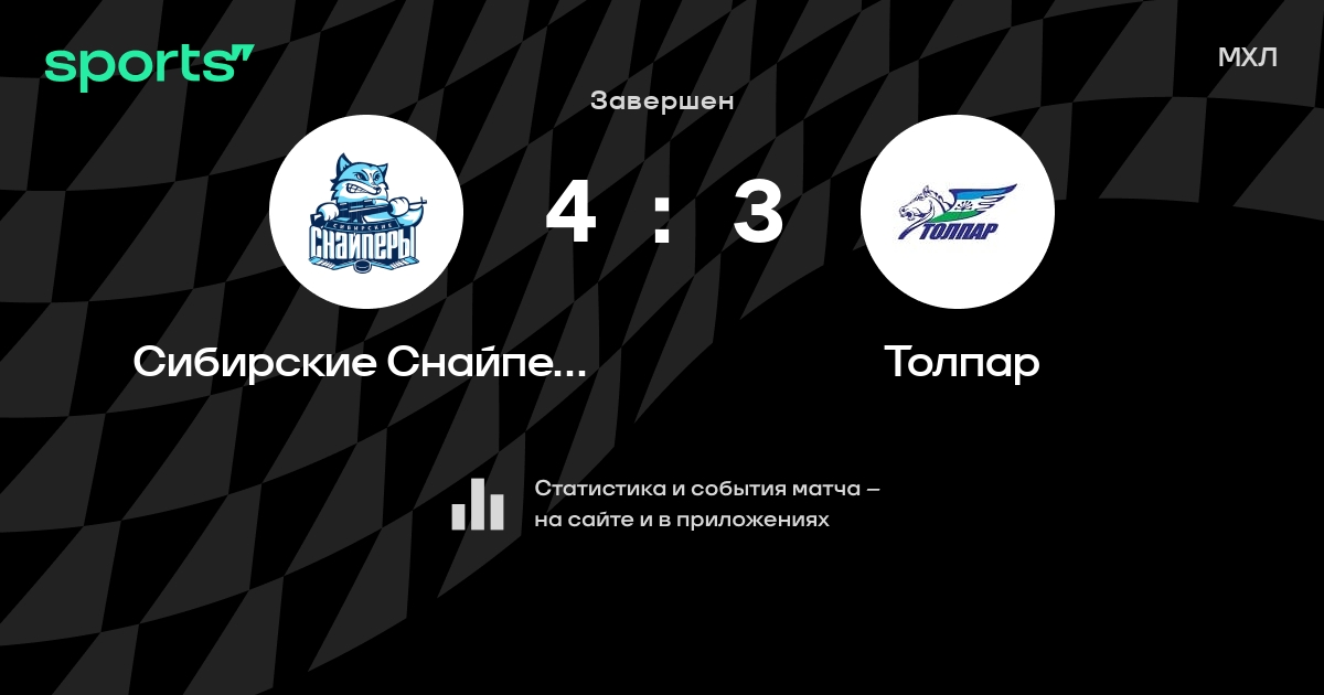 В прошедшем матче в рамках турнира МХЛ состоялась встреча команд Сибирские Снайперы - Толпар со счетом 4 : 3.