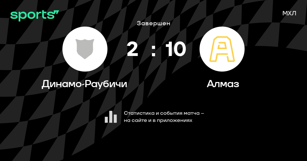 В прошедшем матче в рамках турнира МХЛ состоялась встреча команд Динамо-Раубичи - Алмаз со счетом 2 : 10.