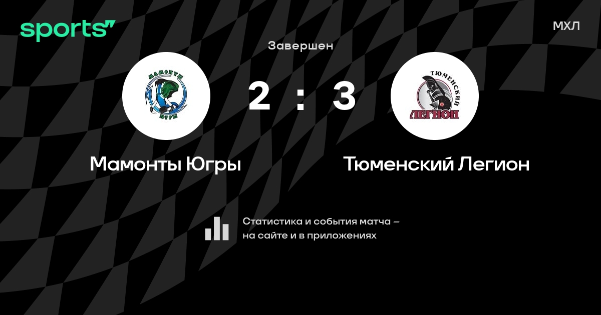 В прошедшем матче в рамках турнира МХЛ состоялась встреча команд Мамонты Югры - Тюменский Легион со счетом 2 : 3.