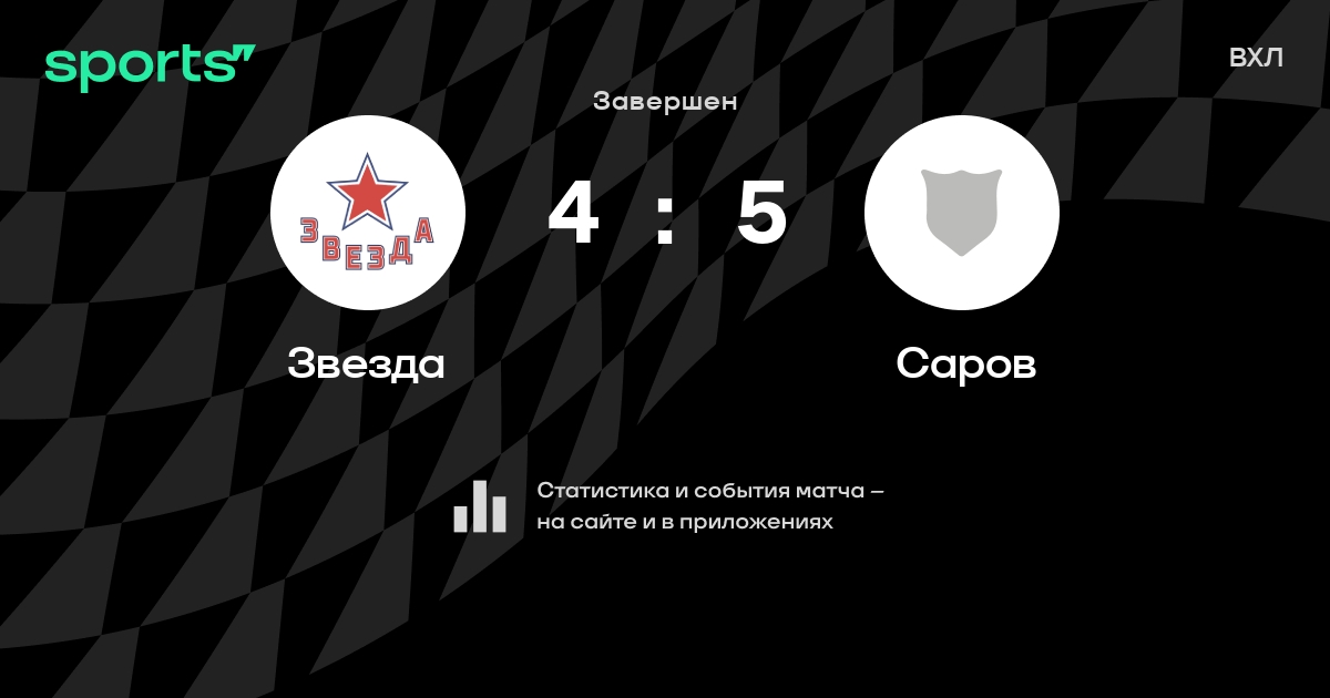 В прошедшем матче в рамках турнира ВХЛ состоялась встреча команд Звезда - Саров со счетом 4 : 5.
