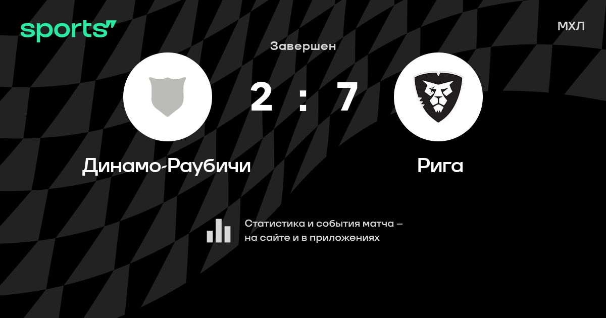 В прошедшем матче в рамках турнира МХЛ состоялась встреча команд Динамо-Раубичи - Рига со счетом 2 : 7.