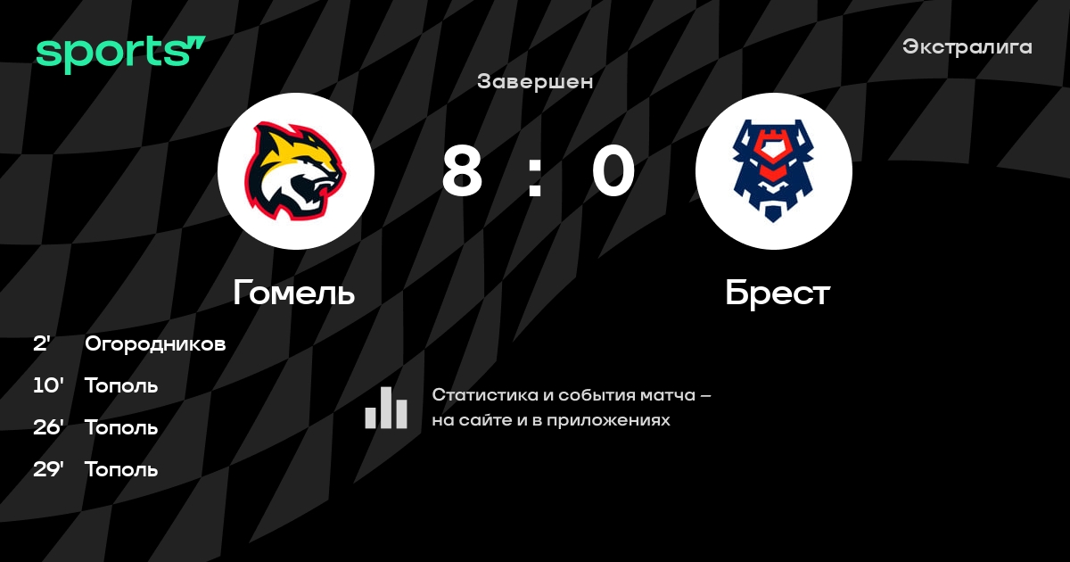 В прошедшем матче в рамках турнира Экстралига состоялась встреча команд Гомель - Брест в городе Гомель (Беларусь) на стадионе Ледовый дворец Гомель (вместимость - 2700)